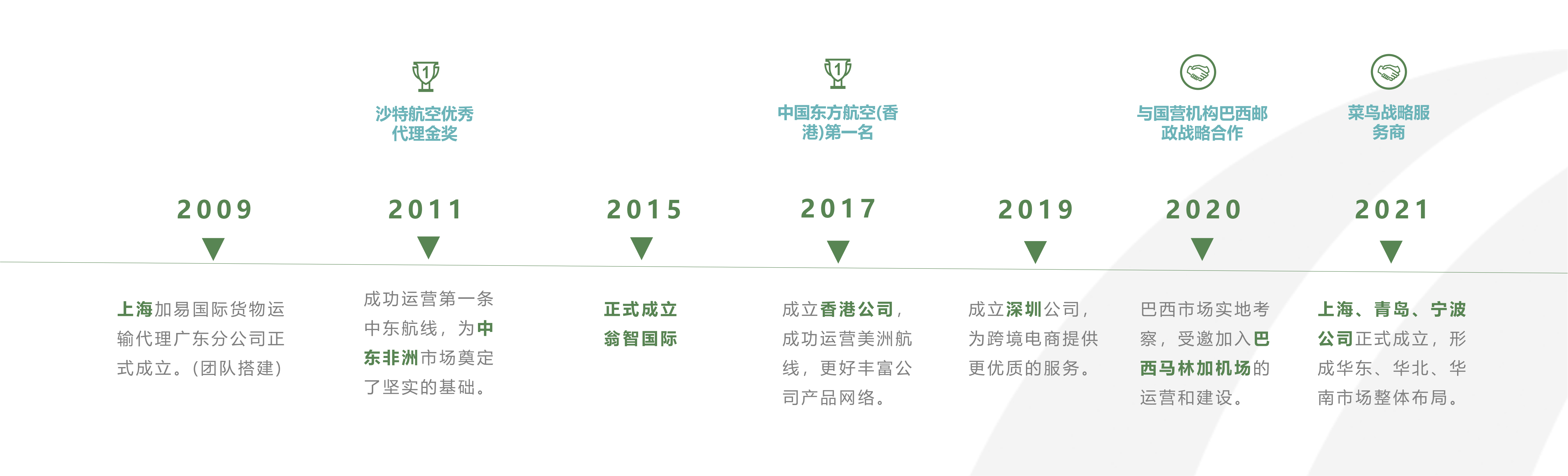 翁智国际物流,扎根于中东、非洲市场,积极开拓欧洲、美洲、南美洲板块,助力品牌出海,提供供应链物流综合解决方案,打造跨境智慧物流服务平台。公司不断改革求进,经过十多年的积累与沉淀,从最初的货运代理,发展成为一家专业的跨境电商物流服务商,并积极响应国家号召,加大国际航空物流航线运力,利用自身包机资源,开展并运营多条航线,往机场运营和大航空产业迈进。